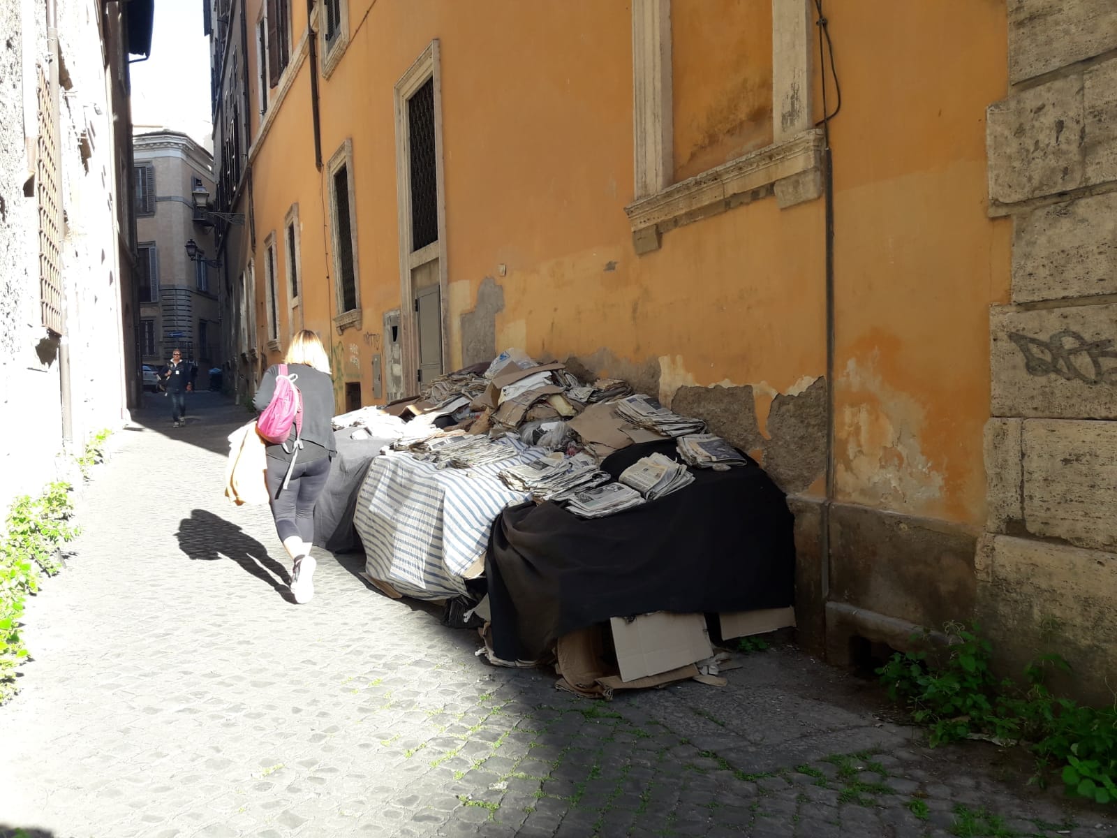 “Una discarica di quotidiani, riviste e libri “nascosta” nel ventre del centro storico capitolino, che cresce di giorno in giorno”. A raccontare stamane il mistero che da oltre sei mesi avvolge via dei Delfini, strada di collegamento tra piazza Margana e via dei Funari, nel cuore dell’Urbe, a pochi metri dal Campidoglio, nelle pagine di cronaca del quotidiano Il Tempo, un servizio a firma della giornalista Valentina Conti.