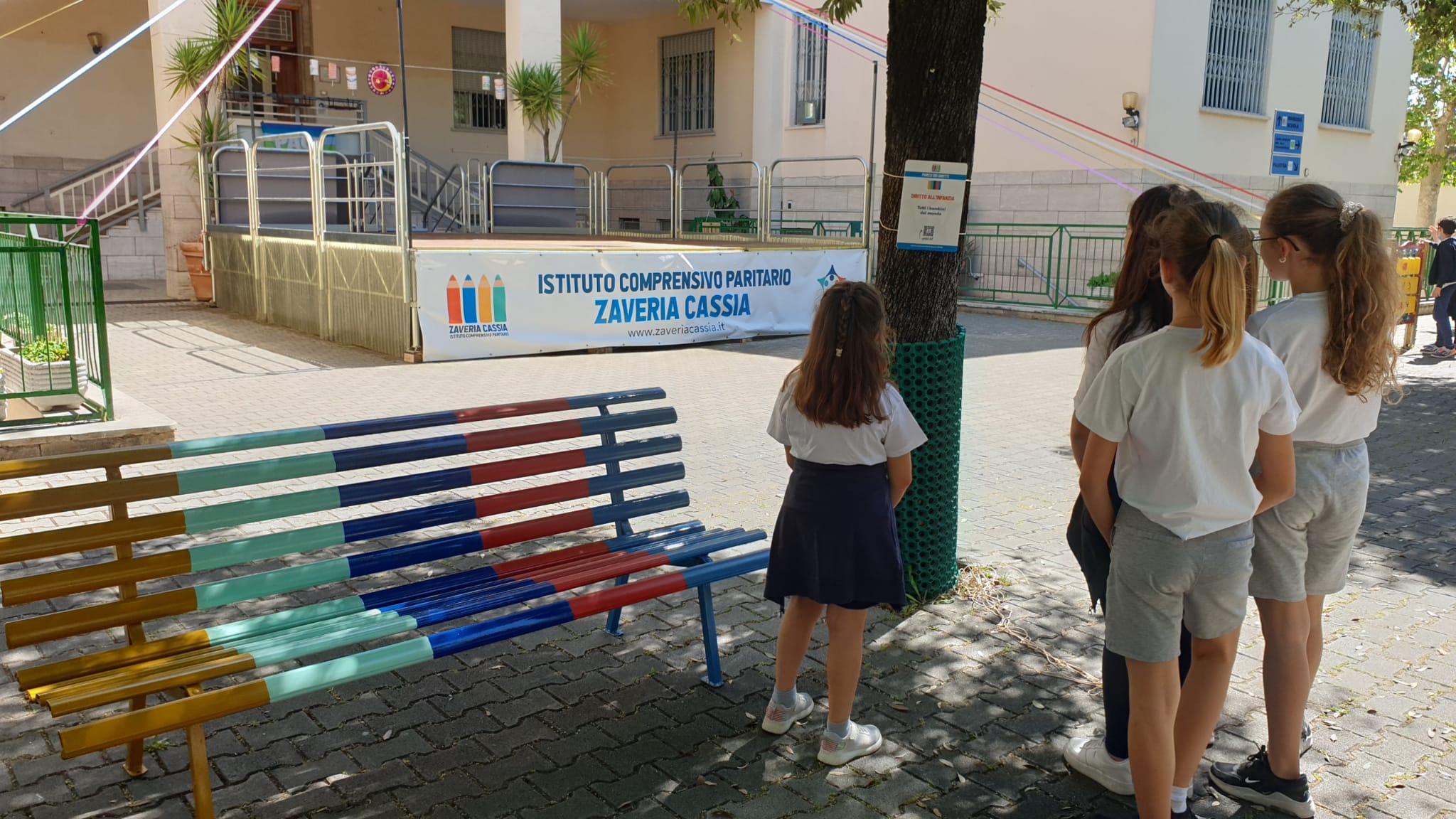 In occasione del trentesimo anniversario della strage di Capaci, l’assessora alle Politiche Sociali e alla Salute di Roma Capitale Barbara Funari ha partecipato all’inaugurazione del “Parco dei Diritti” nella scuola Zaveria Cassia, che opera nel quartiere di San Basilio ed è gestita dalla cooperativa Kairos. Da oggi nove panchine colorate saranno dedicate ad importanti protagonisti di diritti umani e legalità. Saranno ricordati: Sandro Pertini, Franca Rame, Ezio Bosso, Madre Teresa di Calcutta, Nelson Mandela, Peppino Impastato, Malala Yousafza e per il diritto alla giustizia alcuni magistrati fra i quali Paolo Borsellino e Giovanni Falcone. Una panchina è stata dedicata anche a tutti i bambini del mondo, per ribadire il diritto all’infanzia. Grazie ad un QRcode si potrà prendere visione dei lavori multimediali, dedicati ai vari personaggi, realizzati dai ragazzi dell’Istituto comprensivo.
